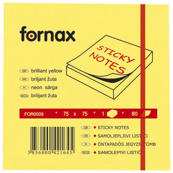 blok samoljepljiv 75x75 mm 80l fornax neon-žuti